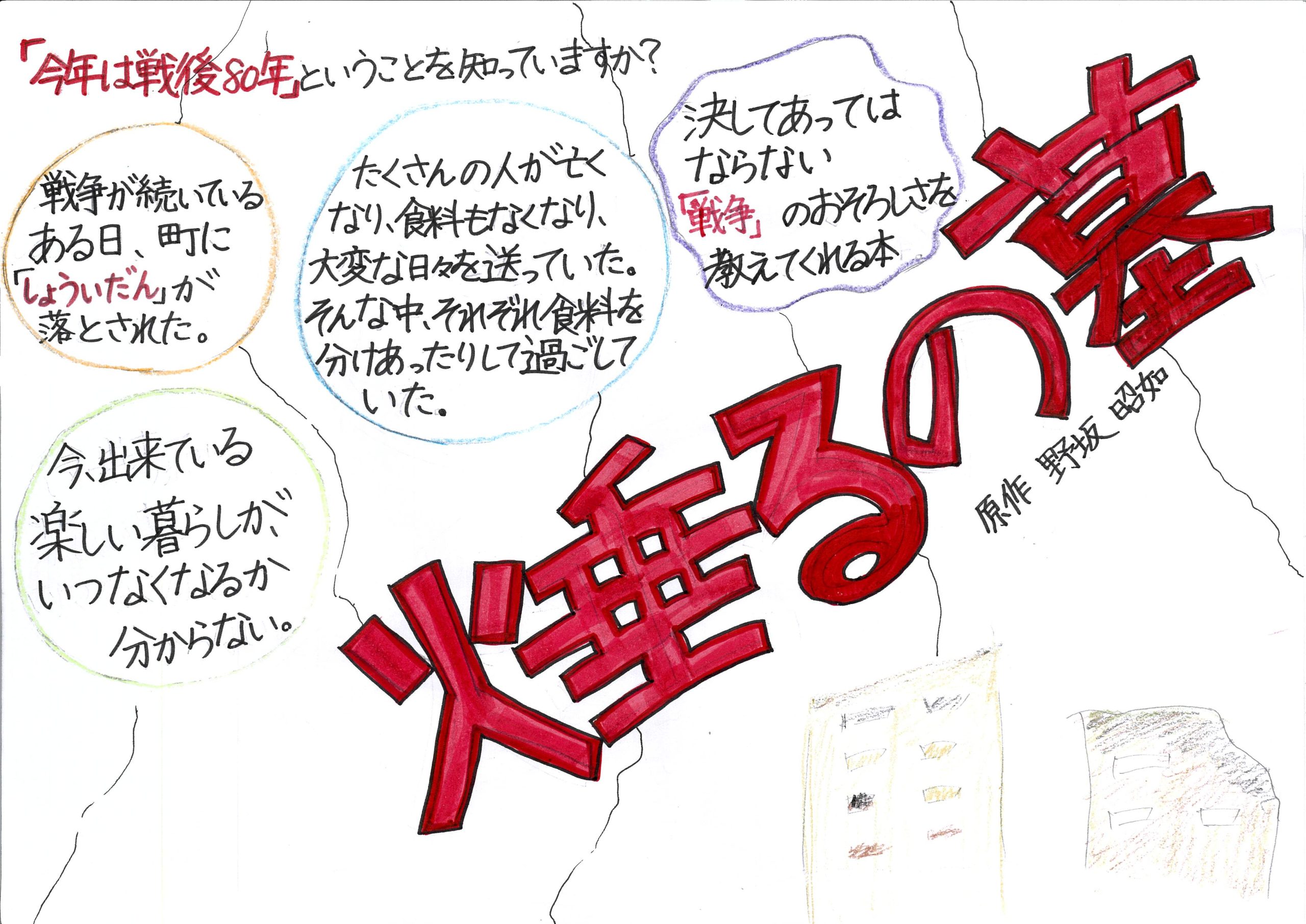 小学生の部 優秀賞 奥中山小学校6年『火垂るの墓』野坂 昭如/著、徳間書店