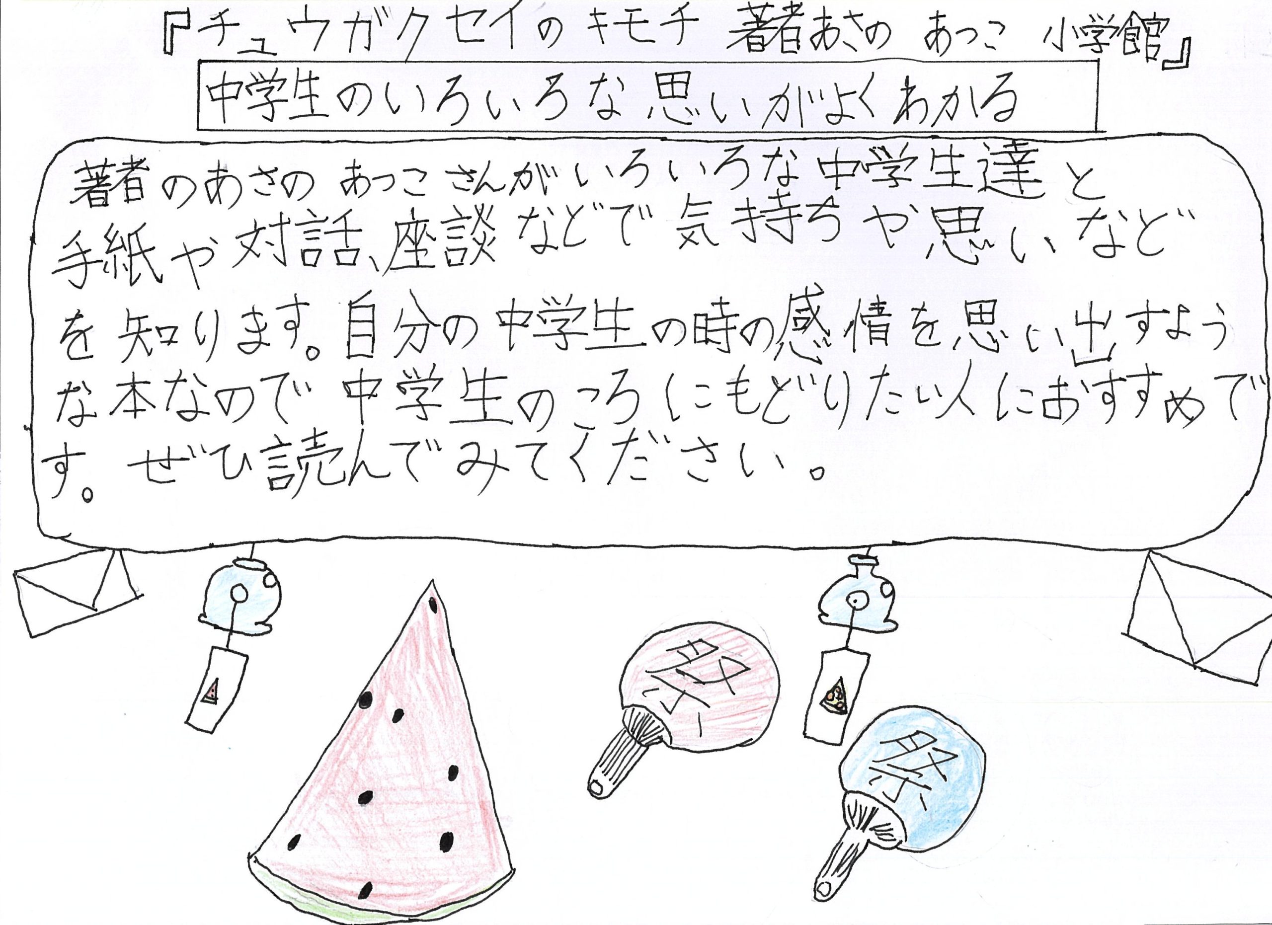 中学生の部 佳作 奥中山中学校1年『チュウガクセイのキモチ』あさの あつこ/著、小学館