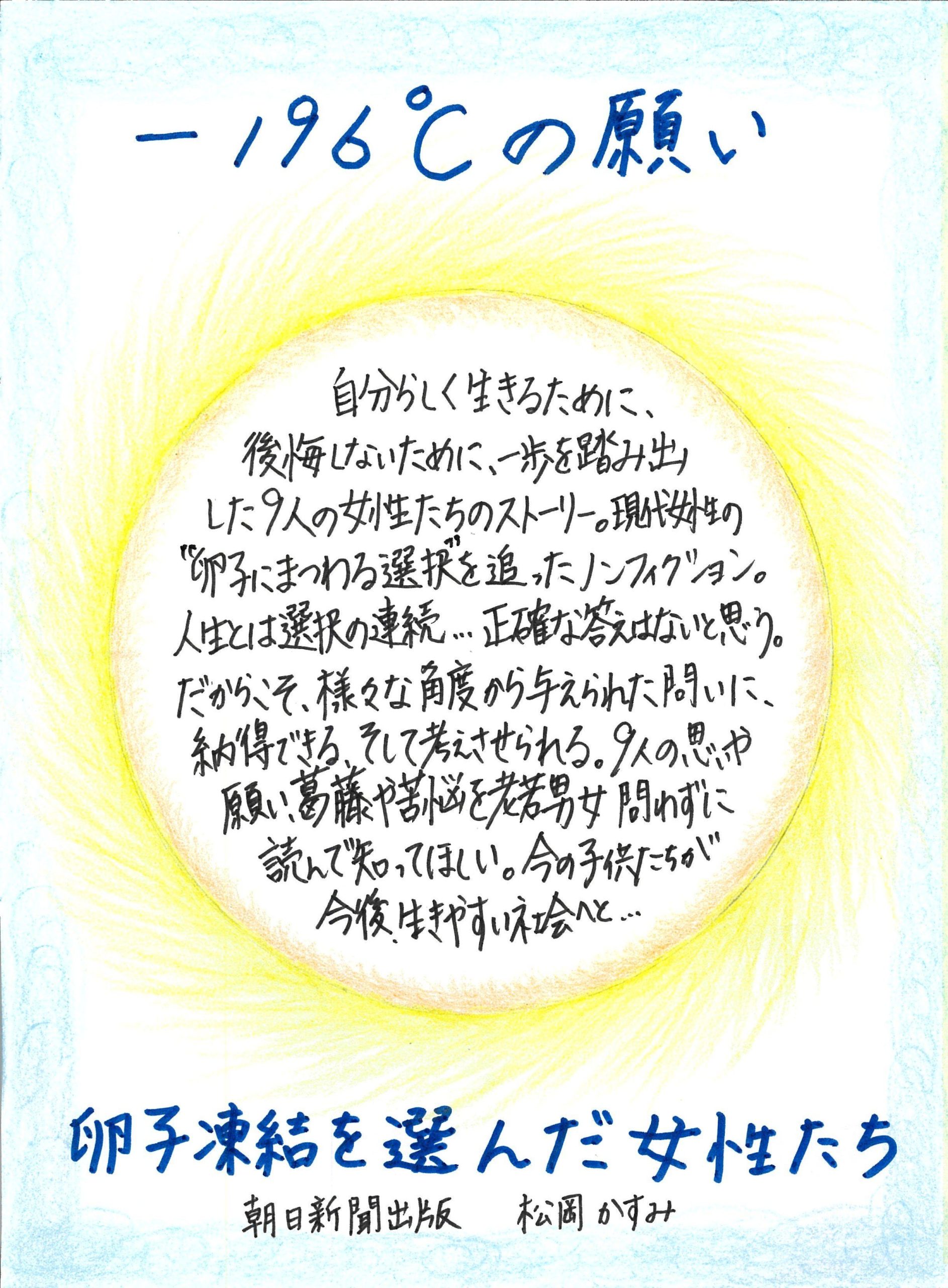 一般の部(高校生以上) 優秀賞 一般 『-196℃の願い 卵子凍結を選んだ女性たち』 松岡 かすみ/著、朝日新聞出版