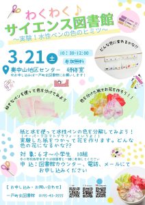 NEW!! わくわく♪サイエンス図書館〜実験!水性ペンの色のヒミツ〜を開催します!